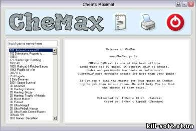 CHEats MAXimal - наибольшая из известных на данный момент программ, которые являют собой базу данных с кодами для игр. Простой и красивый интерфейс, малый размер, и при этом огромное количество представленных игр.