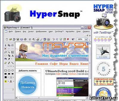 HyperSnap - инструмент для захвата изображения, позволяющий скопировать не только окна обычных программ, но и игры, скринсейверы и видеофильмы. При помощи HyperSnap вы сможете сделать скриншот всего экрана монитора, его части, окна определенной програмки (совместно с курсором либо без), игр и скринсейверов (работающих в режимах DirectX и 3Dfx Glide), видео- и DVD-фильмов, и сохранить его в одном из наиболее, чем 20-и форматов, включая BMP, GIF и JPEG.